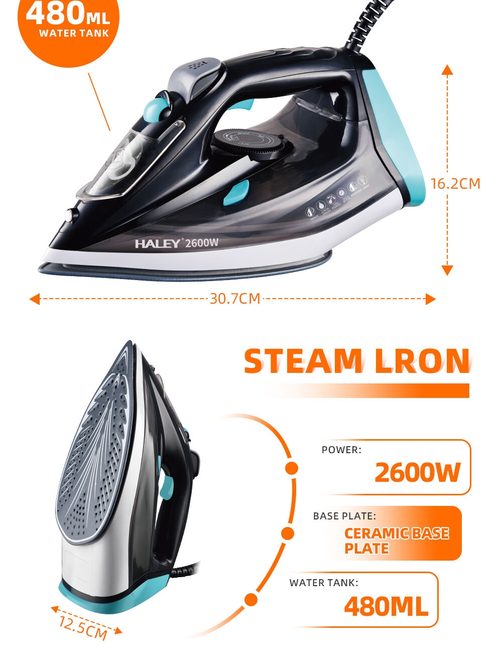 | Nom du produit | HALEY Fer à repasser à main de table plat et vertical pour vêtements Fabricants Fer à repasser portatif professionnel à vapeur |