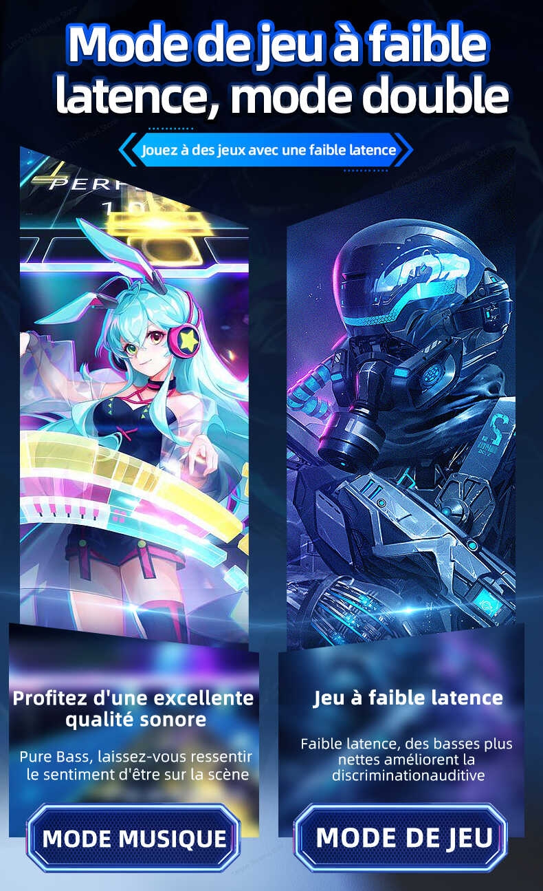 Les derniers écouteurs de jeu de conception de Lenovo en 2022. Double mode pour la musique/jeu, puce de jeu personnalisée, faible latence pour le jeu, confortable à porter, décodage audio AAC HD