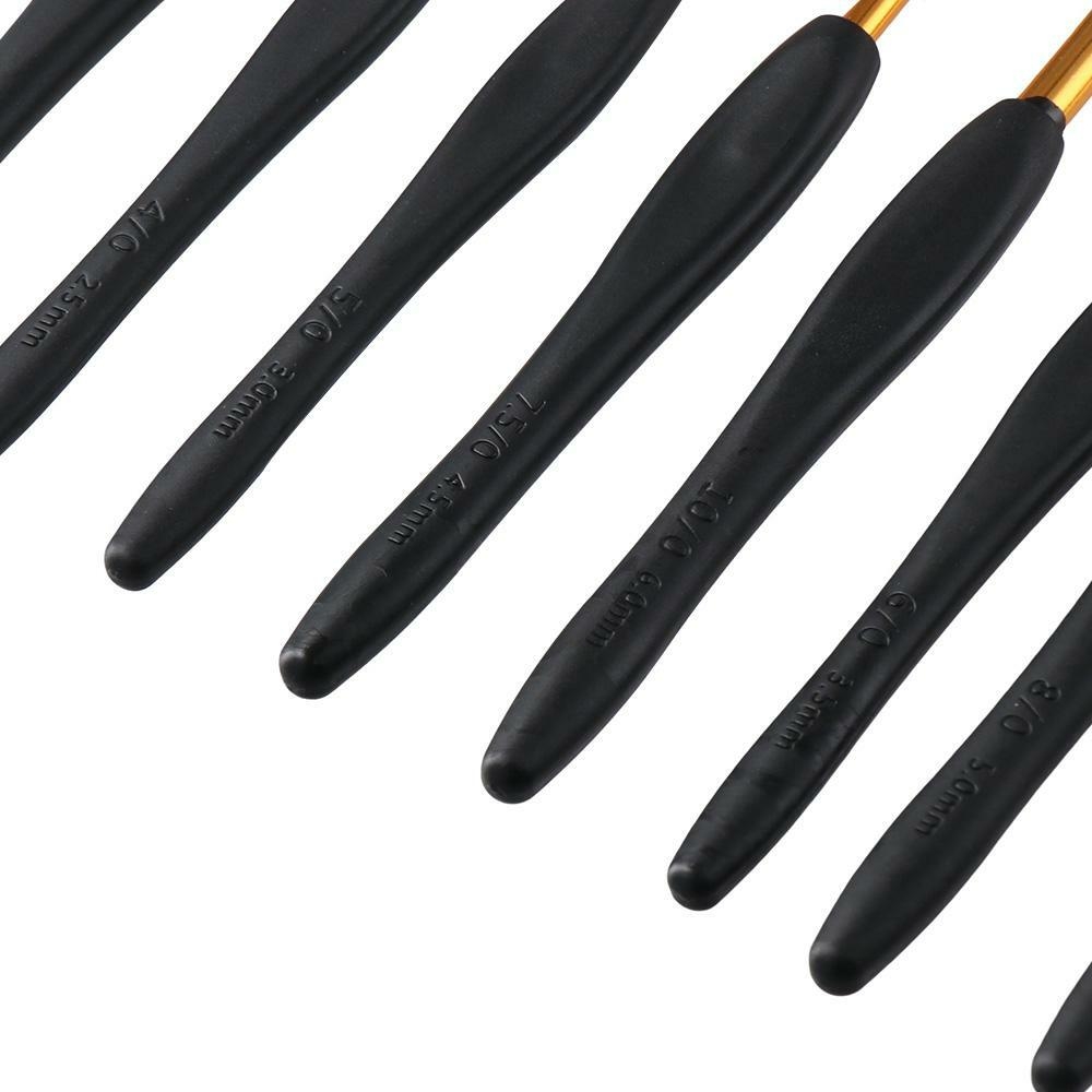 Knitting Crochet Kit: Black gold style crochet hook set includes 9 different sizes: 2.5mm, 3mm, 3.5mm, 4mm, 4.5mm, 5mm, 5.5mm, and 6mm. The crochet hook length is 14cm/5.5inch.