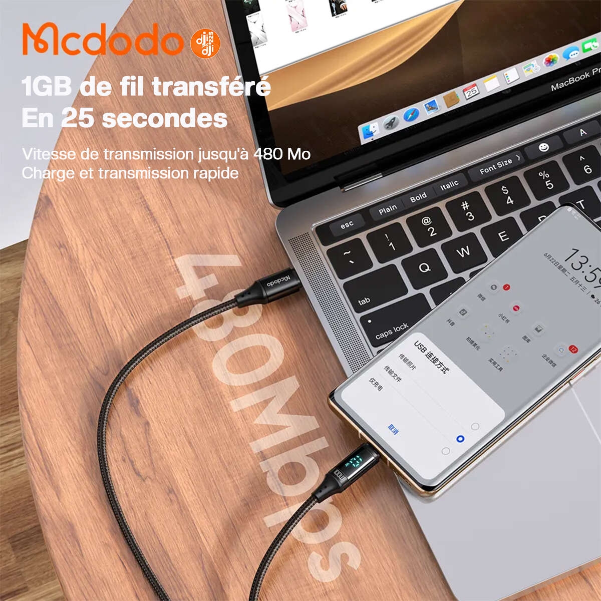 Le Mcdodo est un câble capable de délivrer une puissance de 100W, il est en ces termes Capable de charger tous les ordinateurs avec un port de Charge Type-C.