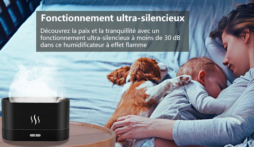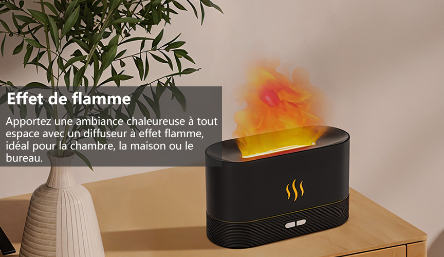 Humidificateur Aromathérapie Flamme, Diffuseur Ultrasonique USB avec Effet de Flamme Réaliste, Luminosité Réglable, Arrêt Automatique sans Eau, Idéal pour les Chambres, Bureaux et Détente