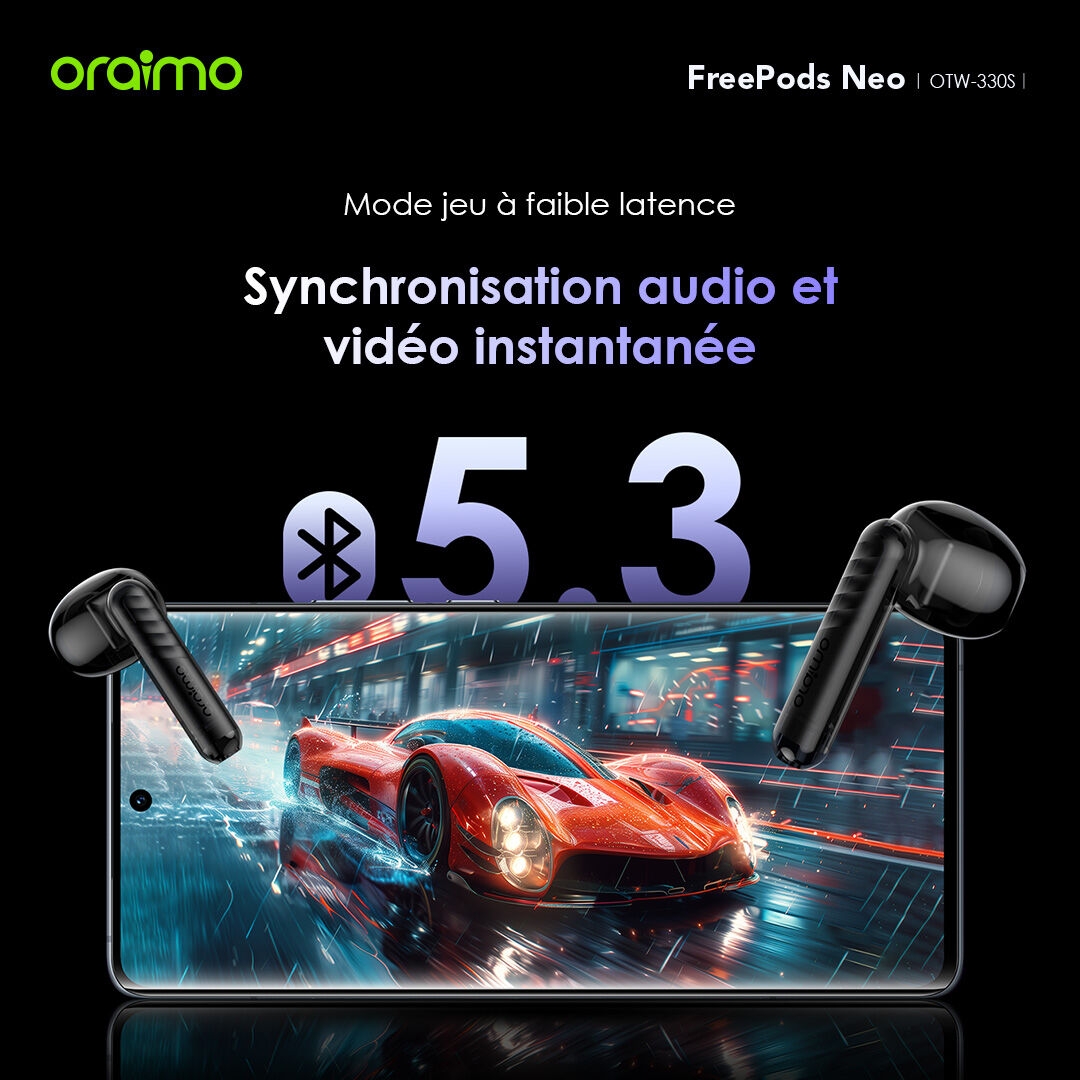 Plongez dans vos morceaux préférés sans vous presser ! Les FreePods Neo semi-auriculaires d'oraimo offrent une qualité sonore exceptionnelle et un confort supérieur, transformant chaque session d'écoute en un véritable bonheur.