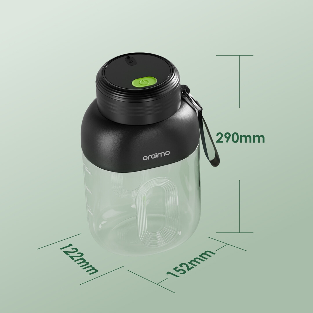 The blender is designed with a convenient carry strap, making it easy to take your fresh juice wherever you go.