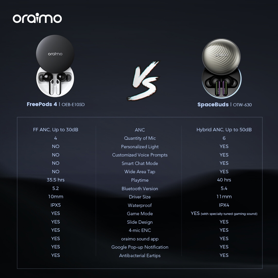 Experience pure tranquility like in the space with oraimo's advanced hybrid noise-cancelling technology that drowns out distractions effortlessly and provides up to 50dB noise reduction. Immerse yourself in your favorite tunes, focusing solely on the sound that matters.