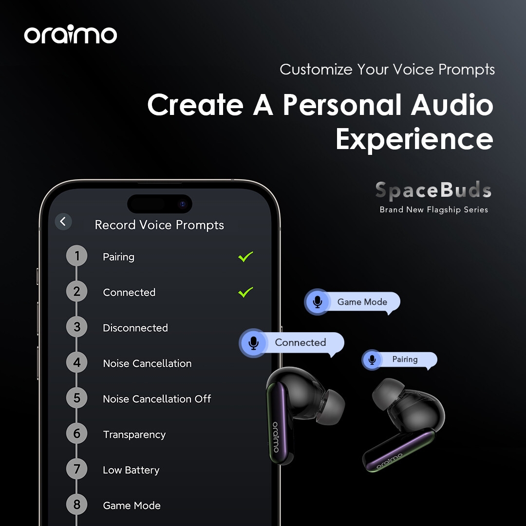 Customized voice prompts that guide you through your listening journey. Tailor interactions to your taste, and make your SpaceBuds truly yours.