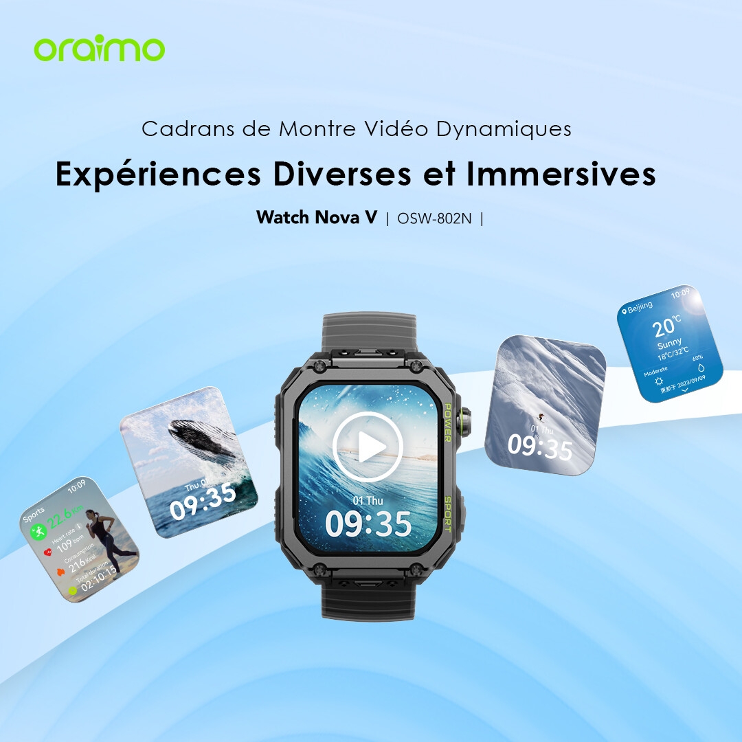 Watch Nova V peut synchroniser la page de photographie avec le téléphone portable via l'application oraimo Health, permettant le contrôle