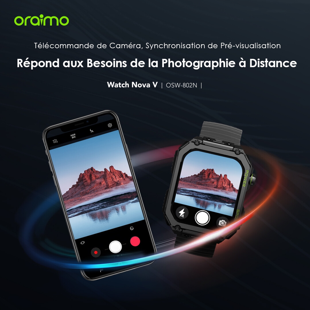Watch Nova V peut synchroniser la page de photographie avec le téléphone portable via l'application oraimo Health, permettant le contrôle