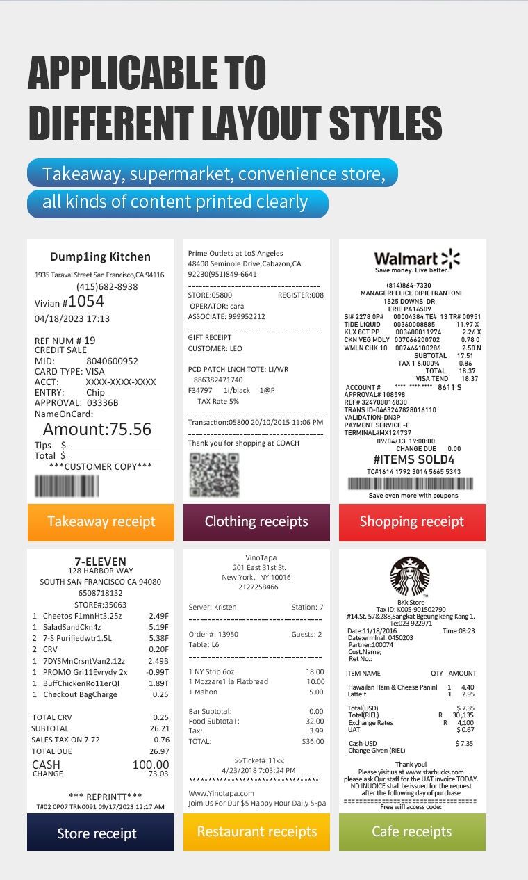 | Matériau du papier | Papier thermique pour reçus uniquement (Pas d'étiquette) |