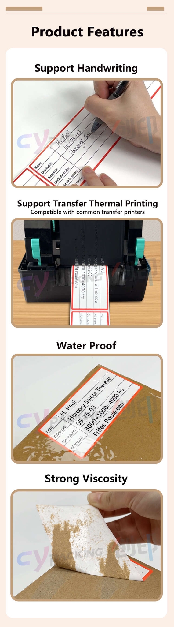 | ["Caractéristique"] | ["Sensible à la chaleur, étanche, résistant aux huiles, résistant à l'alcool, forte adhésivité, résistant aux rayures, etc."] |