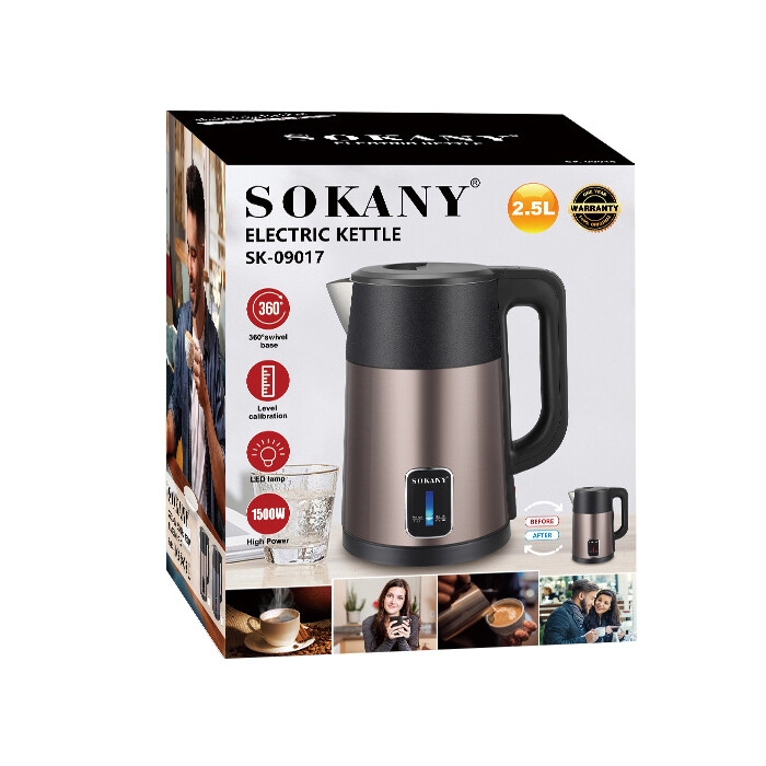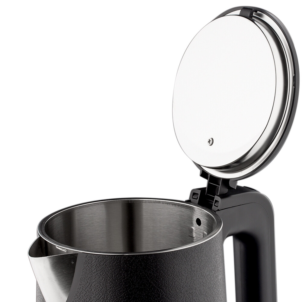 Sécurité : La bouilloire est fabriquée en acier inoxydable, garantissant durabilité et résistance à la corrosion. La conception à double couche empêche également l'eau d'entrer en contact avec l'élément chauffant, réduisant ainsi les risques de surchauffe et de choc électrique.
