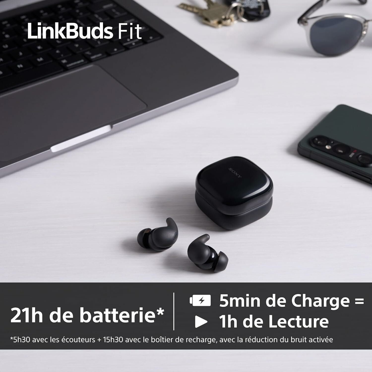 Sony LinkBuds Fit : avec un poids de seulement 4,8 g, ces écouteurs offrent un confort ultime et un coussin d'air innovant qui assure un maintien sûr. En outre, ils sont résistants à l'eau. La qualité sonore est exceptionnelle, avec des aigus détaillés, des basses puissantes et une gamme de médiums riches. Ils sont certifiés Hi-Res Audio sans fil et disposent de DSEE Extreme pour améliorer chaque piste, et vous pouvez ajuster le son à vos préférences avec l'égaliseur dans l'application Sony Grâce à la fonction de réduction du bruit de haute qualité, vous pouvez masquer le monde et vous concentrer sur votre musique. L'optimisation Auto-NC optimise cet effet pour votre environnement. Le mode son d'ambiance automatique vous permet de toujours garder un œil sur votre environnement. Profitez de jusqu'à 21 heures de lecture de musique (5,5 heures avec les écouteurs + 15,5 heures avec l'étui), plus la fonction de charge rapide. Choisissez entre quatre couleurs et cinq autres couleurs pour l'étui (vendu séparément). Connectez deux appareils Bluetooth simultanément via la connexion multipoint, et profitez de plusieurs options de contrôle simples, y compris la saisie, les commandes vocales ou l'application sur votre smartphone. Enfin, les LinkBuds Fit utilisent des plastiques recyclés dans les écouteurs et le boîtier et sont livrés dans un emballage 100 % sans plastique.