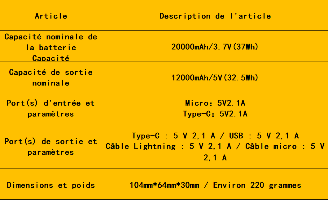 ● Exemple : une batterie externe d'une capacité nominale de 20 000 mAh fournira environ 12 000 à 14 000 mAh de capacité de charge utilisable pour les appareils (les valeurs réelles varient en fonction de l'appareil et des conditions d'utilisation).