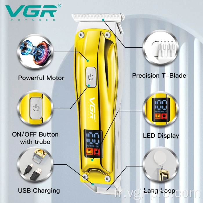 La tondeuse électrique rechargeable VGR V-956 est un outil de soin capillaire conçu pour offrir une coupe précise et sans fil. Voici quelques caractéristiques que l'on pourrait attendre de cette tondeuse :