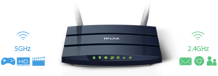 L'Archer C50 travaille sur les deux bandes Wi-FI de 2.4 et 5GHz, permettant ainsi des performances Wi-Fi étonnantes. L'utilisation simultanée des deux bandes vous offre la flexibilité d'utiliser deux réseaux dédiés - avec une confortable réserve de bande passante pour tous vos besoins. Les tâches simples tels qu'envoyer des email ou naviguer peuvent être affectées à la bande de 2.4GHz tandis que les tâches consommatrices de bande passante tel le jeu en ligne, la diffusion de vidéos HD peuvent être supportées par la bande de 5GHz - le tout simultanément