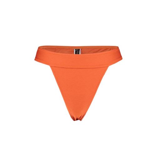 Le bas de bikini orange texturé à jambe régulière TBESS21BA0016 se distingue par son design à la fois chic et audacieux.